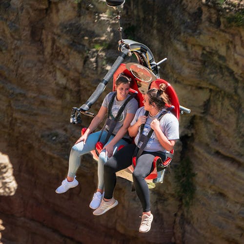 São 60 metros de altura caindo a quase 160km/h. O Giant Canyon Swing mais conhecido como Terror-dactyl é um pêndulo com assento onde os participantes "despencam" como um balanço entre as formações rochosas! Após a queda inicial o balanço se movimenta suavemente deixando você curtir o visual belíssimo do Cayon Williams.
