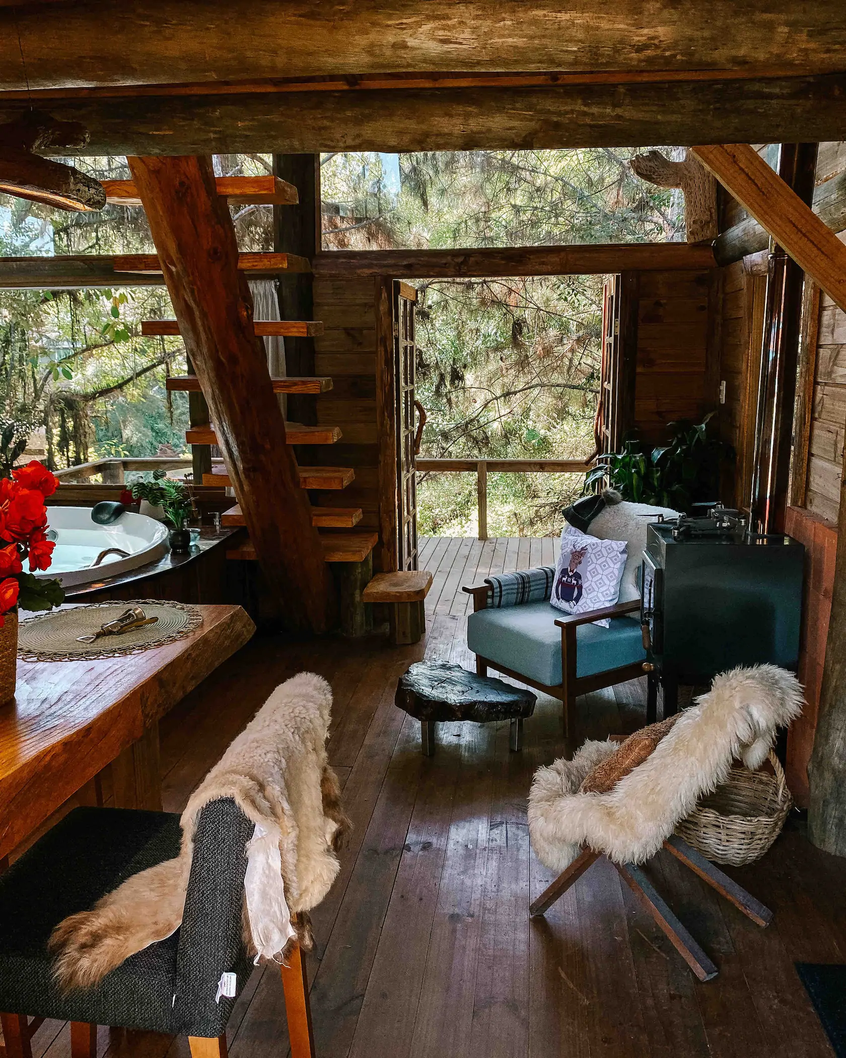 As Cabanas Rio dos Cedros são 4 acomodações exclusivas para adultos e particulares, sem serviço, localizados em uma área rural.