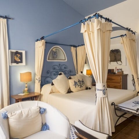 Em cada ambiente uma nova experiência: é isso que o hotel busca oferecer aos hóspedes desde a chegada até o momento da partida. Na região um mundo cheio de zimbros, bordados, terracota e incrustações, artistas sardenhos e uma forte tradição culinária. O Su Gologone começou, de fato, como restaurante em 1967. O fundador, Giuseppe “Peppeddu” Palimodde queria oferecer comida tradicional numa zona repleta de bandidos, perto da nascente natural do Su Gologone, ideia que foi recebida com ceticismo inicial. Com a ajuda de sua esposa Pasqua, capaz de elaborar pratos incríveis, o primeiro restaurante de Oliena se tornou tão popular que as pessoas iam de longe para degustar suas iguarias. O amor pela Sardenha é sintetizado na comida preparada com cuidado e dedicação. Depois de tal sucesso, surgiu a ideia de oferecer hospedagem aos clientes: os primeiros oito quartos passaram a ser trinta e três em 1975, até os atuais setenta. Ainda assim, chamá-los de “quartos” estaria diminuindo; são, na verdade, viagens à arte, cultura e hospitalidade da Sardenha. Giovanna, filha de Peppeddu é a autora da decoração externa e da disposição dos quartos. Do mágico Bar Tablao, teatro de aperitivos inesquecíveis, ao Terraço dos Sonhos e dos Desejos, onde se pode contemplar as estrelas, sem esquecer o maravilhoso Botteghe d’Arte Su Gologone Style. Mente explosiva e incansável, Giovanna reinventa a decoração todos os anos: cada visita torna-se assim uma nova descoberta. Envolto por uma natureza intacta, o sentido e o gosto pela arte da Sardenha, o amor pela cozinha autêntica e requintada, o hotel é uma verdadeira hospedagem de experiência.