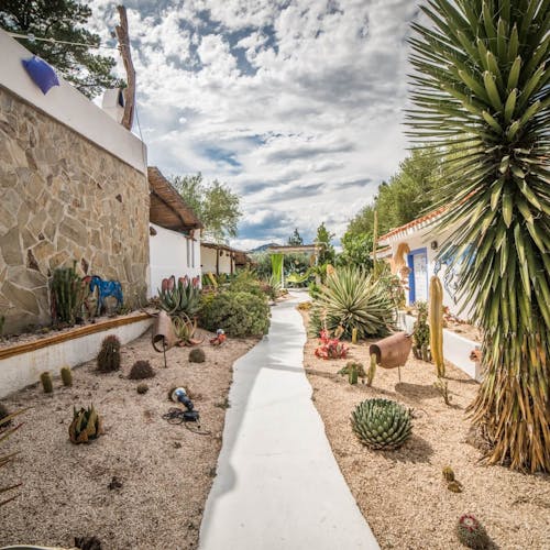 - 🌵. Tex Willer's Garden: Um jardim dedicado a Aurelio Galleppini, o criador de Tex Willer, personagem principal da história em quadrinhos italiana Tex. Inspirou-se nas pedras cársticas e nas rochas brancas desta parte da Sardenha, onde a paisagem é semelhante aos desertos do Velho Oeste e foram replicados em um espaço no hotel