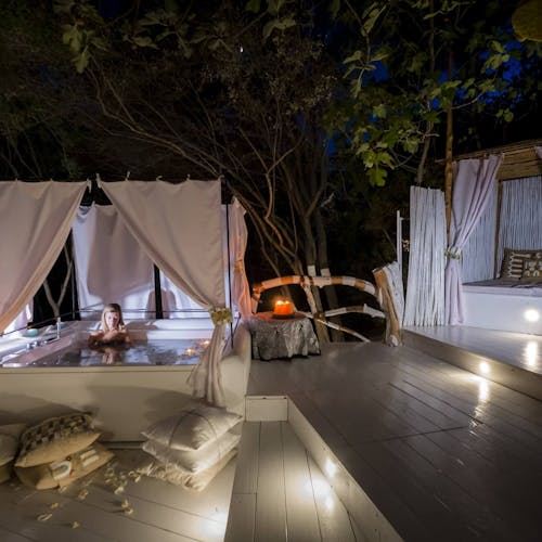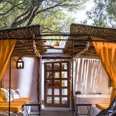 As suítes são um show à parte! Com opções ao ar livre, outras meio cavernosas esbranquiçadas mas abertas o suficiente para estar entre as árvores, todas tem algum detalhe excêntrico e peculiar.