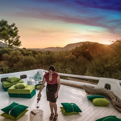 - 🥐 The nest of Bread: Uma mistura de jardim, arte e coleção de suculentas: uma porta se abre para o "ninho do pão" do hotel, dedicado aos vários tipos de pães da Sardenha. Ali acontece uma demonstração de panificação com vegetais e ervas aromáticas, seguida de várias degustações. Segue-se uma refeição alegre, com escolha de petiscos, degustação de sopas e massas e especialidades à base de queijos. As sobremesas e digestivos são servidos no Terraço dos Desejos, um espaço soberbo onde uma grande urna contém várias mensagens escritas para os hóspedes.