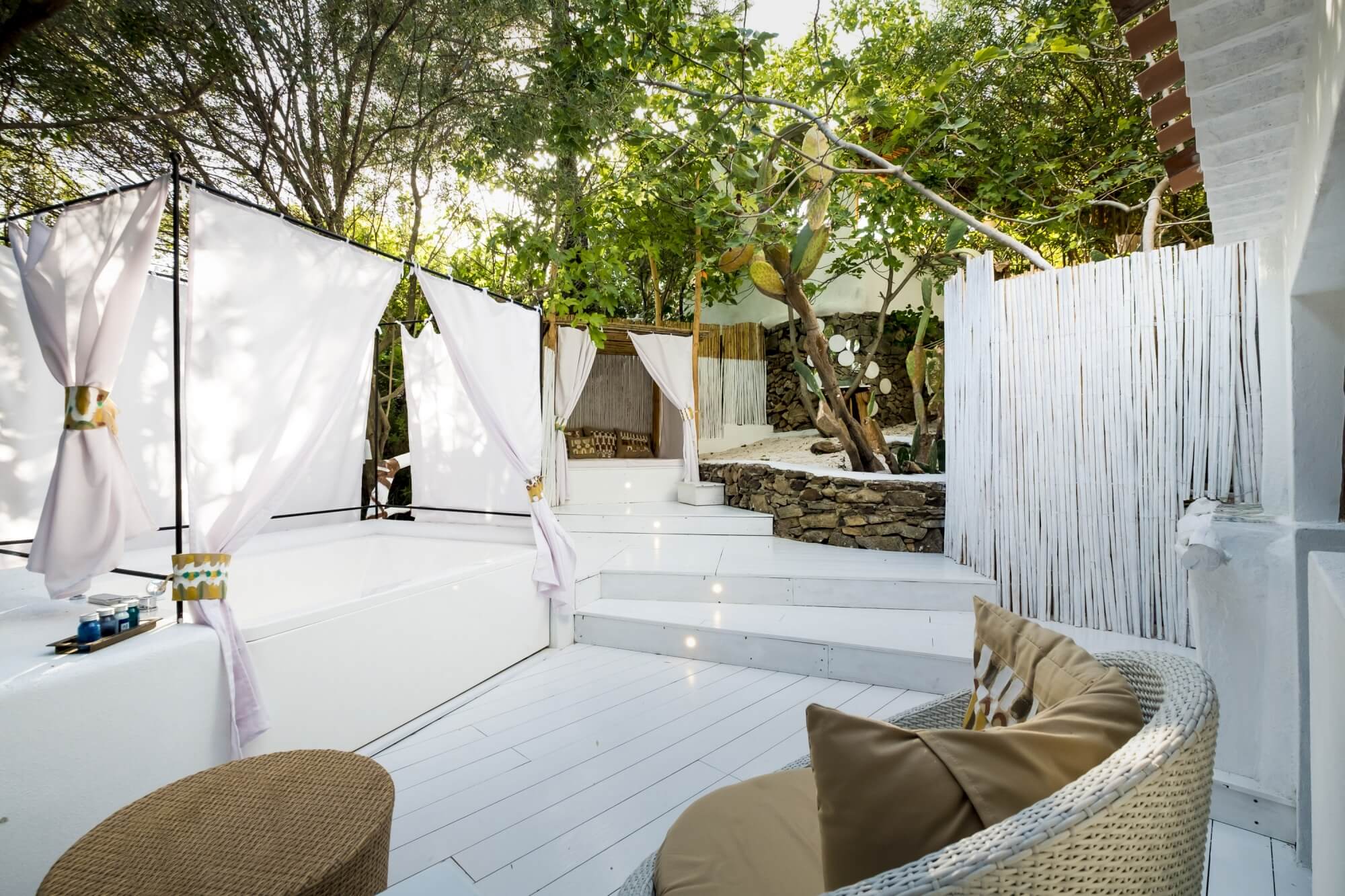 As suítes são um show à parte! Com opções ao ar livre, outras meio cavernosas esbranquiçadas mas abertas o suficiente para estar entre as árvores, todas tem algum detalhe excêntrico e peculiar.