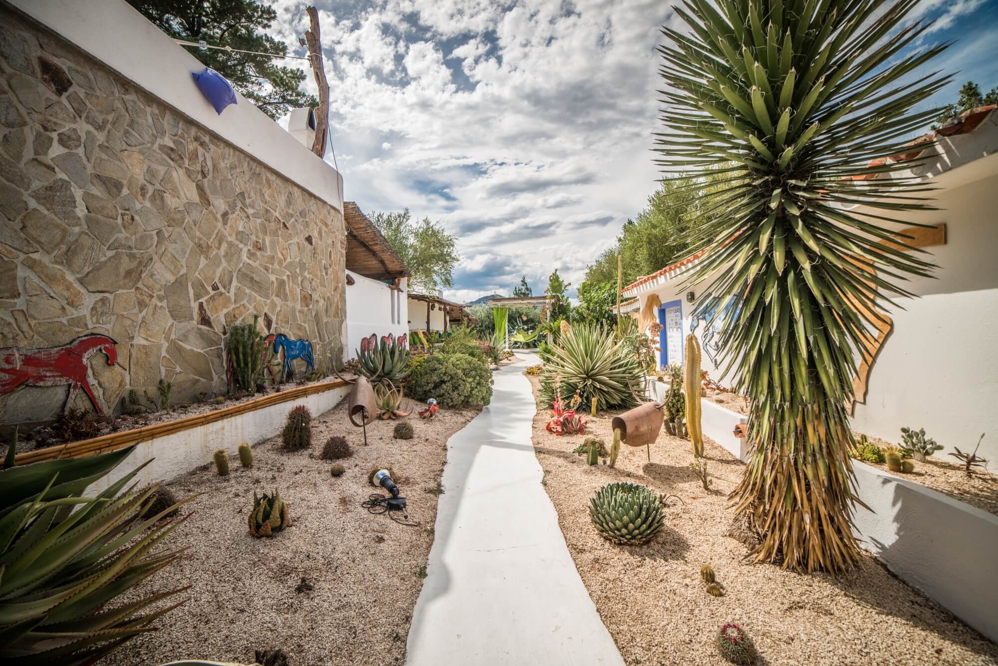 - 🌵. Tex Willer's Garden: Um jardim dedicado a Aurelio Galleppini, o criador de Tex Willer, personagem principal da história em quadrinhos italiana Tex. Inspirou-se nas pedras cársticas e nas rochas brancas desta parte da Sardenha, onde a paisagem é semelhante aos desertos do Velho Oeste e foram replicados em um espaço no hotel
