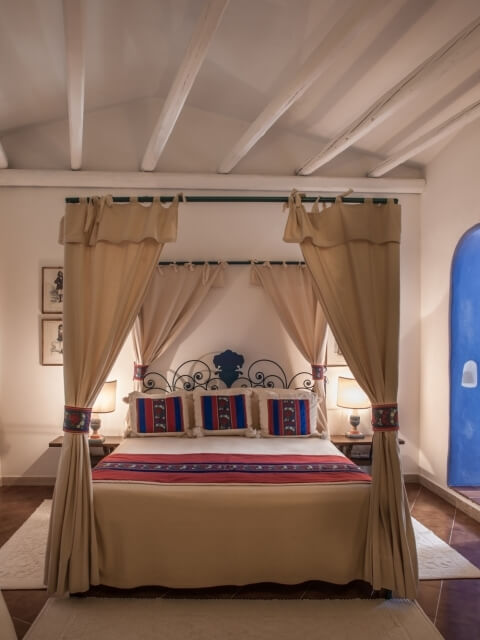 Em cada ambiente uma nova experiência: é isso que o hotel busca oferecer aos hóspedes desde a chegada até o momento da partida. Na região um mundo cheio de zimbros, bordados, terracota e incrustações, artistas sardenhos e uma forte tradição culinária. O Su Gologone começou, de fato, como restaurante em 1967. O fundador, Giuseppe “Peppeddu” Palimodde queria oferecer comida tradicional numa zona repleta de bandidos, perto da nascente natural do Su Gologone, ideia que foi recebida com ceticismo inicial. Com a ajuda de sua esposa Pasqua, capaz de elaborar pratos incríveis, o primeiro restaurante de Oliena se tornou tão popular que as pessoas iam de longe para degustar suas iguarias. O amor pela Sardenha é sintetizado na comida preparada com cuidado e dedicação. Depois de tal sucesso, surgiu a ideia de oferecer hospedagem aos clientes: os primeiros oito quartos passaram a ser trinta e três em 1975, até os atuais setenta. Ainda assim, chamá-los de “quartos” estaria diminuindo; são, na verdade, viagens à arte, cultura e hospitalidade da Sardenha. Giovanna, filha de Peppeddu é a autora da decoração externa e da disposição dos quartos. Do mágico Bar Tablao, teatro de aperitivos inesquecíveis, ao Terraço dos Sonhos e dos Desejos, onde se pode contemplar as estrelas, sem esquecer o maravilhoso Botteghe d’Arte Su Gologone Style. Mente explosiva e incansável, Giovanna reinventa a decoração todos os anos: cada visita torna-se assim uma nova descoberta. Envolto por uma natureza intacta, o sentido e o gosto pela arte da Sardenha, o amor pela cozinha autêntica e requintada, o hotel é uma verdadeira hospedagem de experiência.