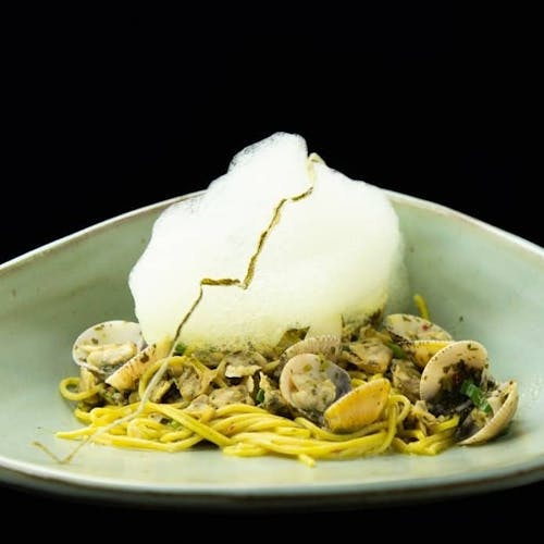 - 🦞 tagliolini de açafrão da terra com mariscos, alho e cítricos