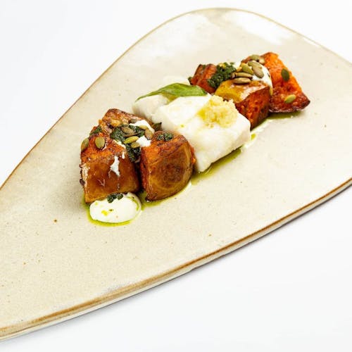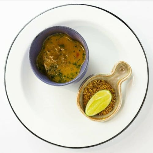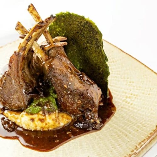 - 🍗 costeleta de cordeiro, molho com vinho, azeitona, pimenta e limão sobre purê de cará, creme de taioba e toque de cumarú