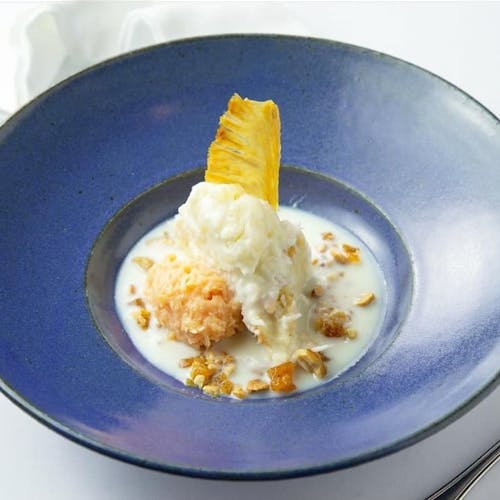 - 🥥 bolo de coco, sorvete de abacaxi com gengibre e cocada de pimenta e praliné crocante