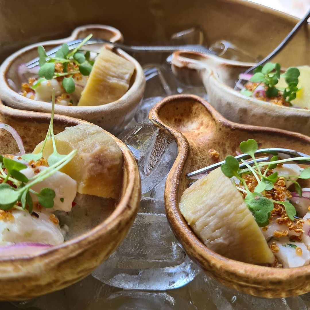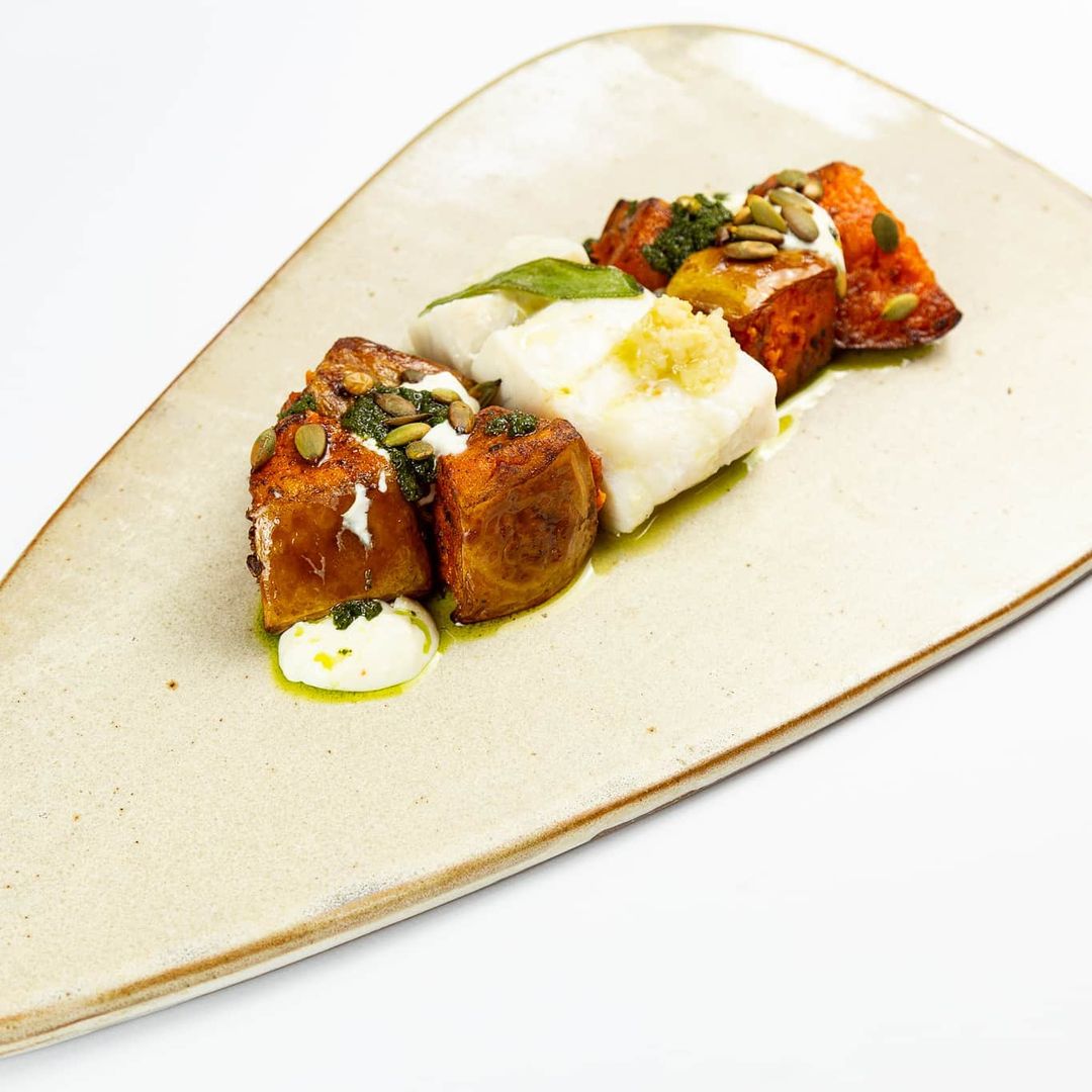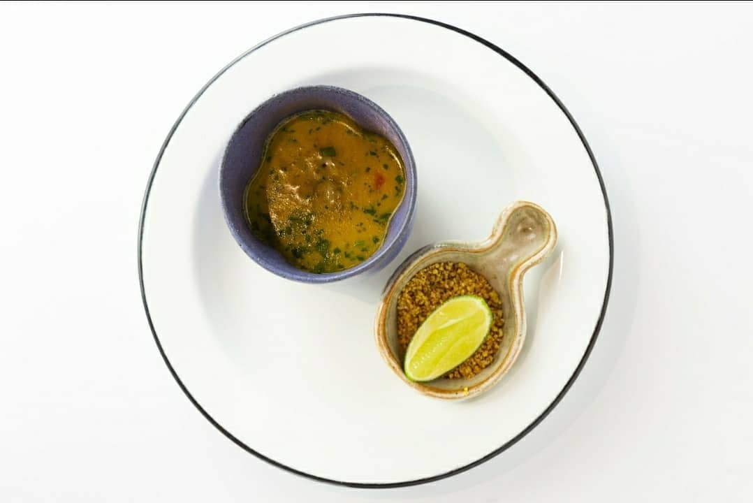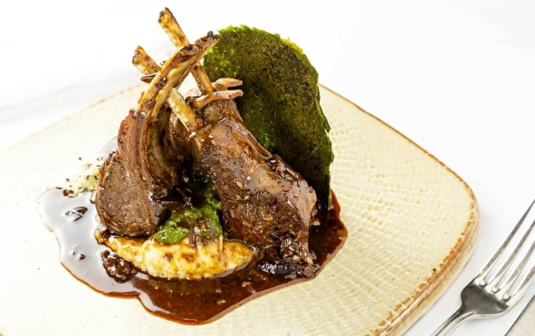 - 🍗 costeleta de cordeiro, molho com vinho, azeitona, pimenta e limão sobre purê de cará, creme de taioba e toque de cumarú