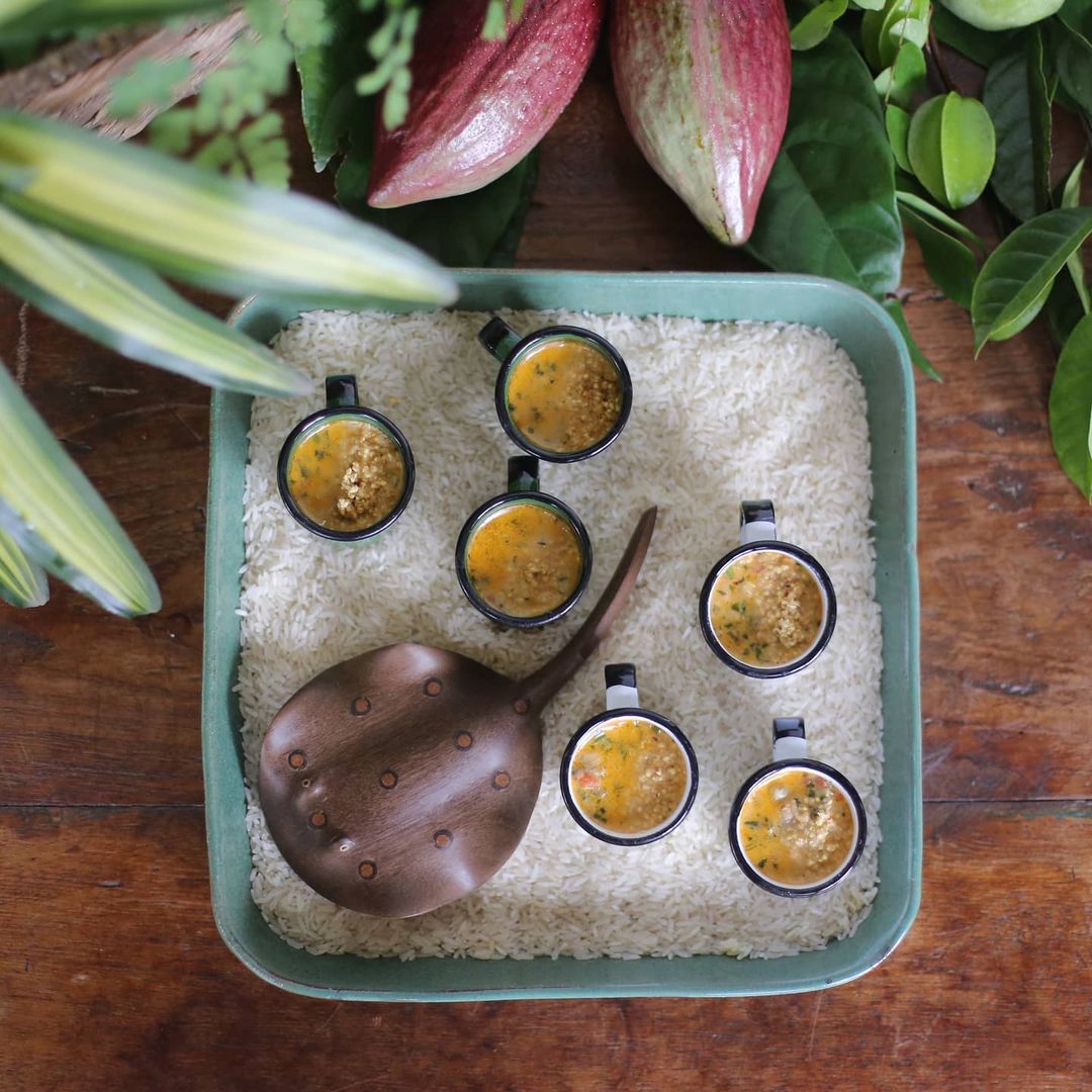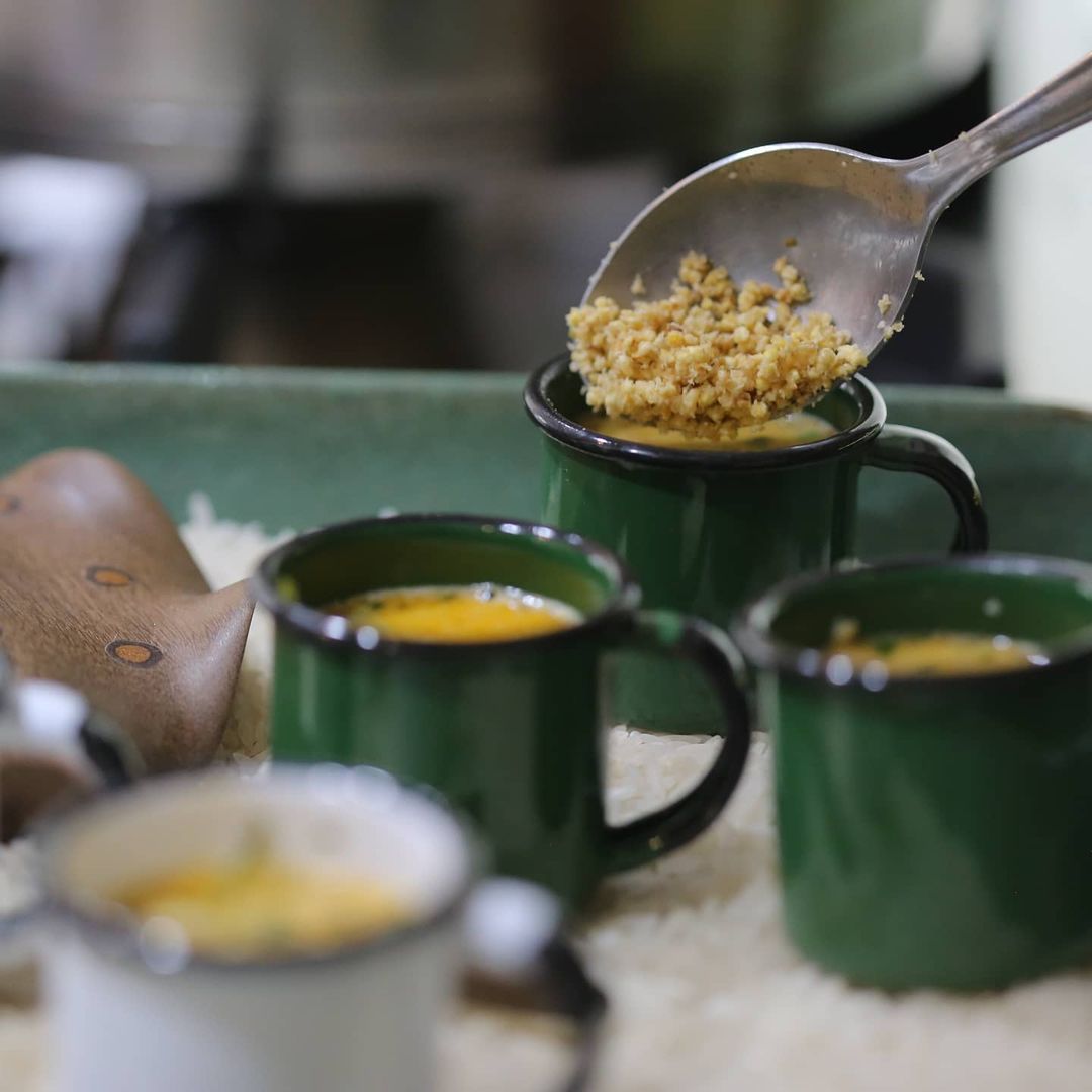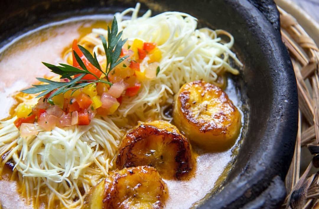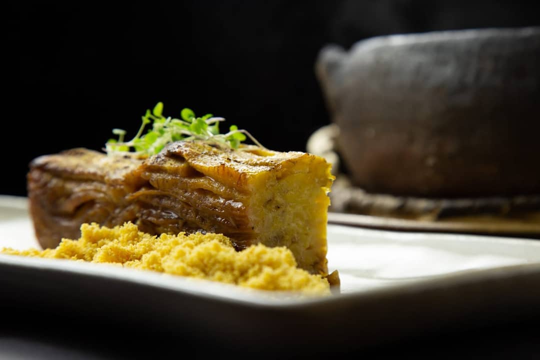 - 🍌 moqueca de banana da terra, palmito e pimenta de bico, com farofa da terra