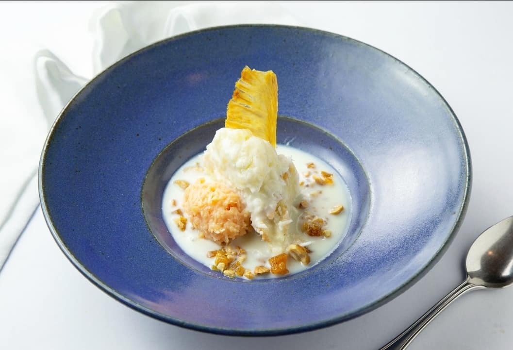 - 🥥 bolo de coco, sorvete de abacaxi com gengibre e cocada de pimenta e praliné crocante