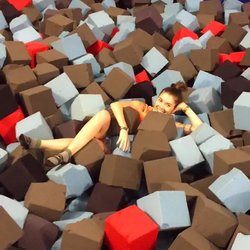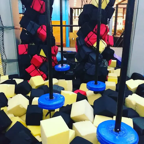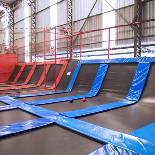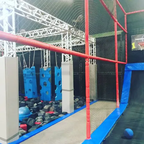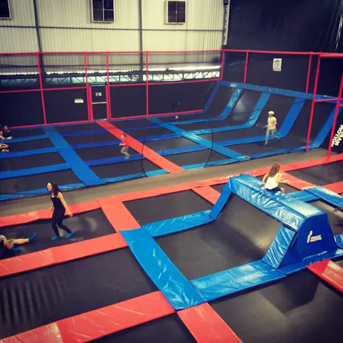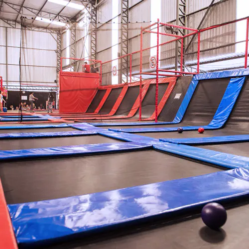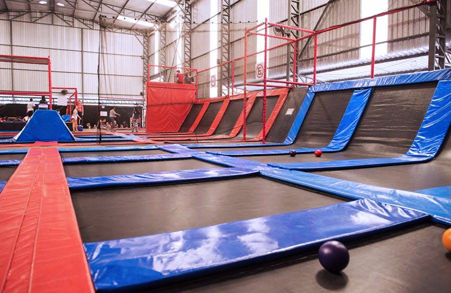É divertidíssimo e ainda queima umas calorias. Além dos trampolins que são imensos e interconectados, tem espaço pra se jogar em piscina de espuma (vai na minha, até adulto se diverte), slackline (não é tão fácil não), e pra quem preferir ainda tem quadra de basquete. Algumas unidades ainda contam com parkour e escalada. Tudo isso na proposta do lugar: usando as camas elásticas!