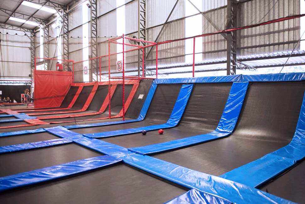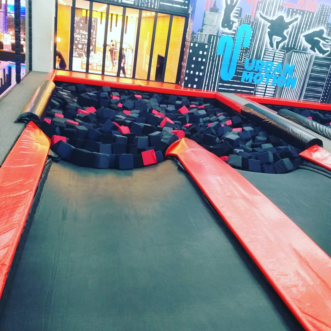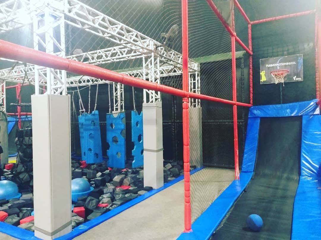 É divertidíssimo e ainda queima umas calorias. Além dos trampolins que são imensos e interconectados, tem espaço pra se jogar em piscina de espuma (vai na minha, até adulto se diverte), slackline (não é tão fácil não), e pra quem preferir ainda tem quadra de basquete. Algumas unidades ainda contam com parkour e escalada. Tudo isso na proposta do lugar: usando as camas elásticas!