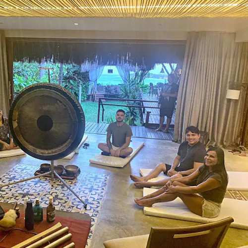 Você experimentará um "SoundBath" com gongos poderosos e um "SoundMassage" com tigelas tibetanas, entre outras surpresas levando ao processo meditativo de forma diferente e potente.