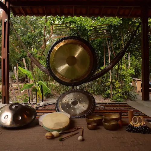 Uma experiência de bem-estar diferente entre a natureza e instrumentos ancestrais em uma viagem sonora