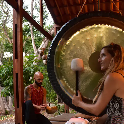 O canto fascinante dos gongos sinfônicos e das taças vibroacústicas conduzem a um estado de transe onde segundo os organizadores faz despertar nossos recursos regenerativos.