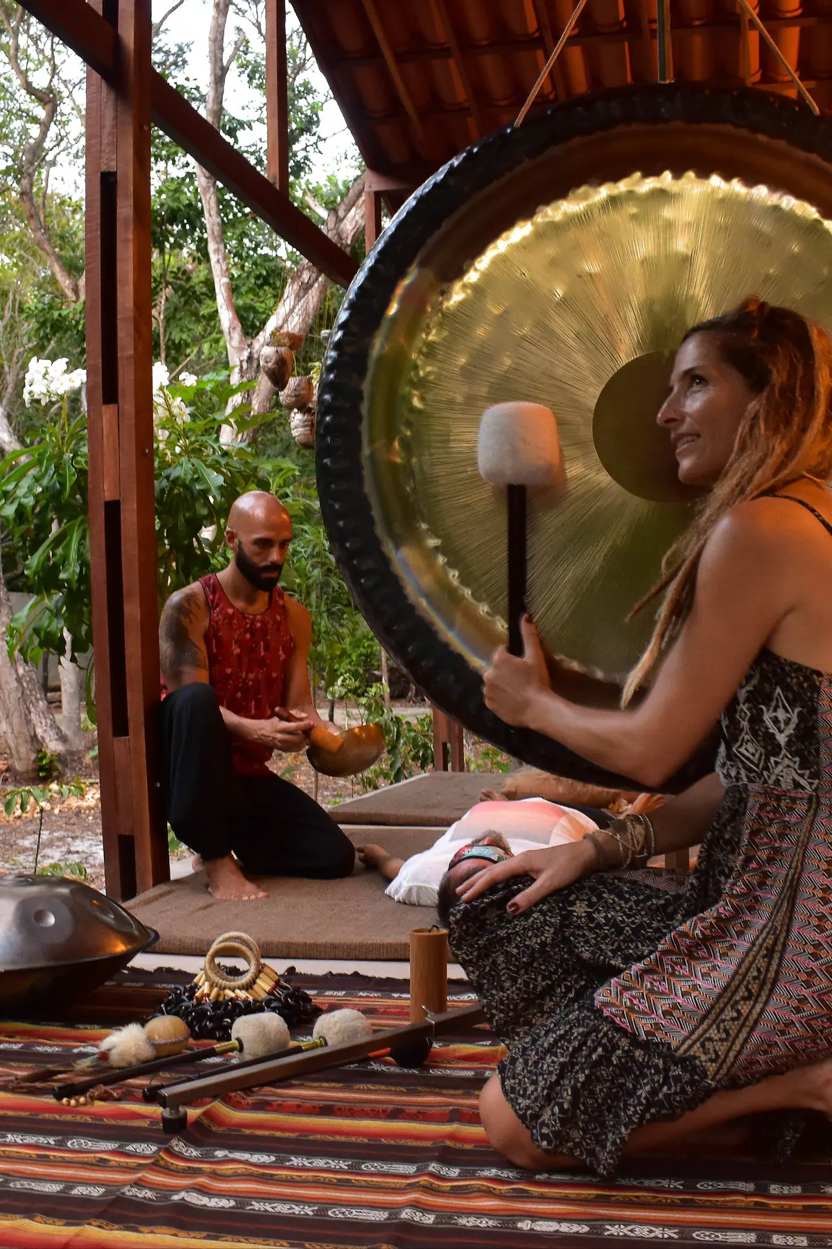 O canto fascinante dos gongos sinfônicos e das taças vibroacústicas conduzem a um estado de transe onde segundo os organizadores faz despertar nossos recursos regenerativos.