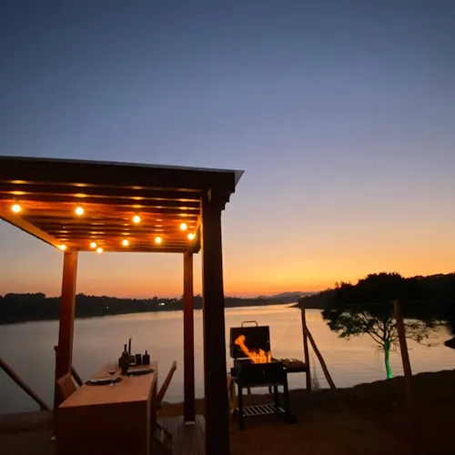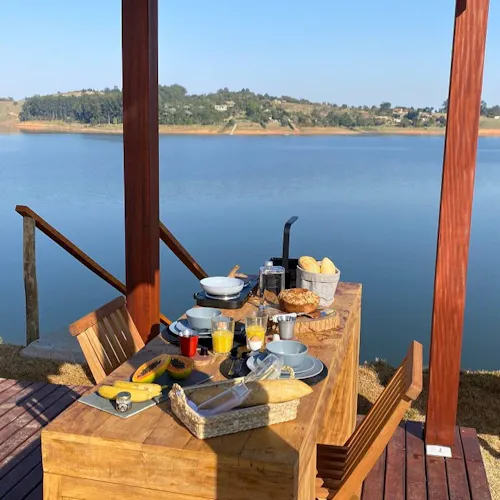A região: A hospedagem fica em um terreno particular à beira da represa de Joanópolis, interior de São Paulo, o bairro é seguro e há lugares próximos para visitação, turismo, esportes e lazer.