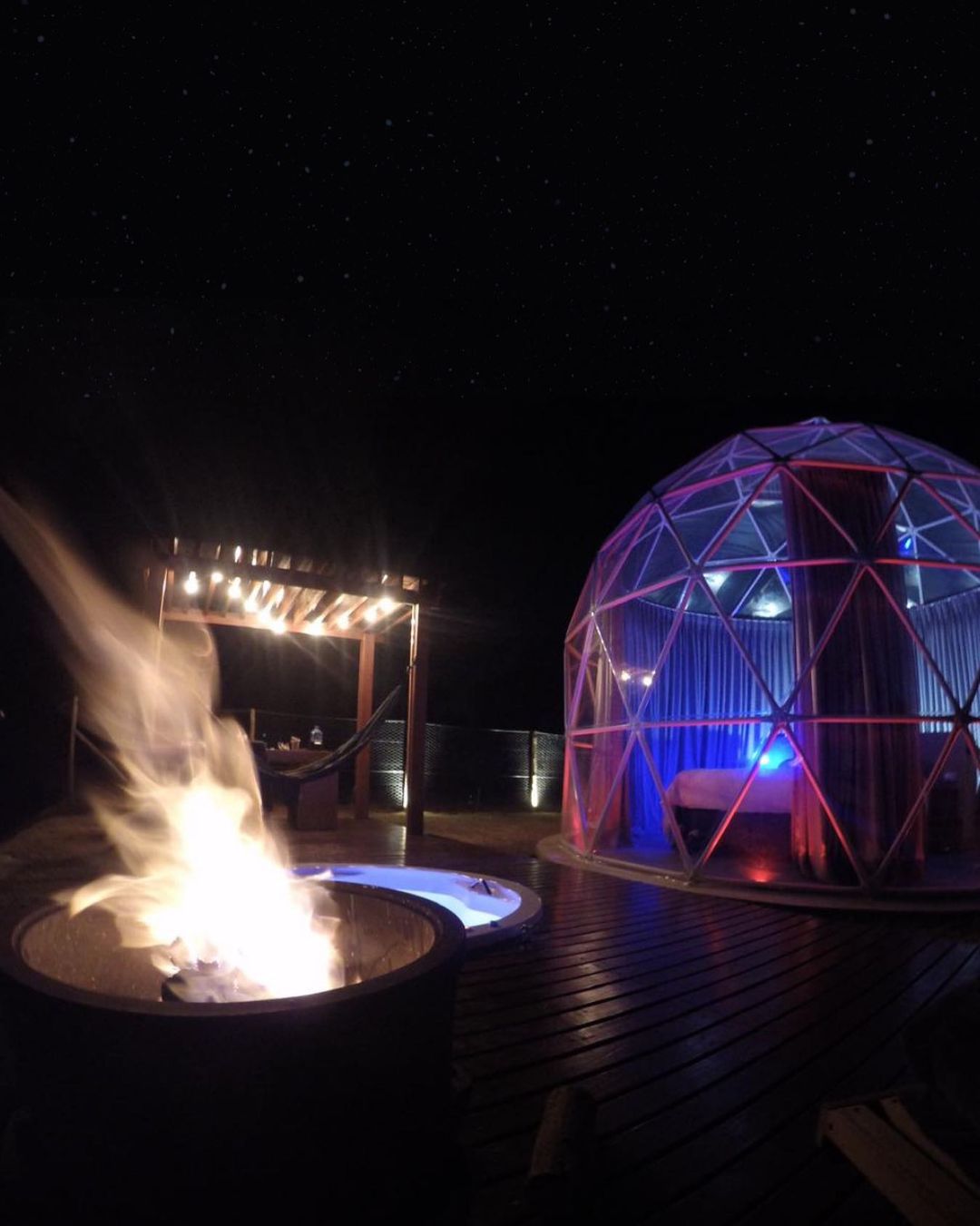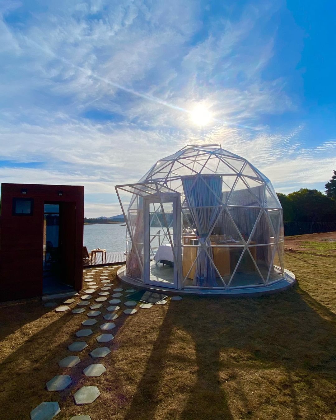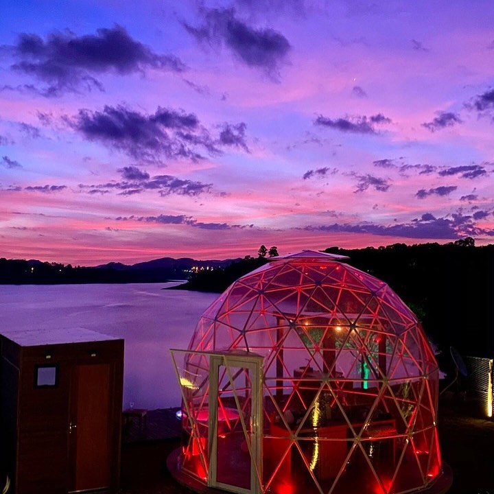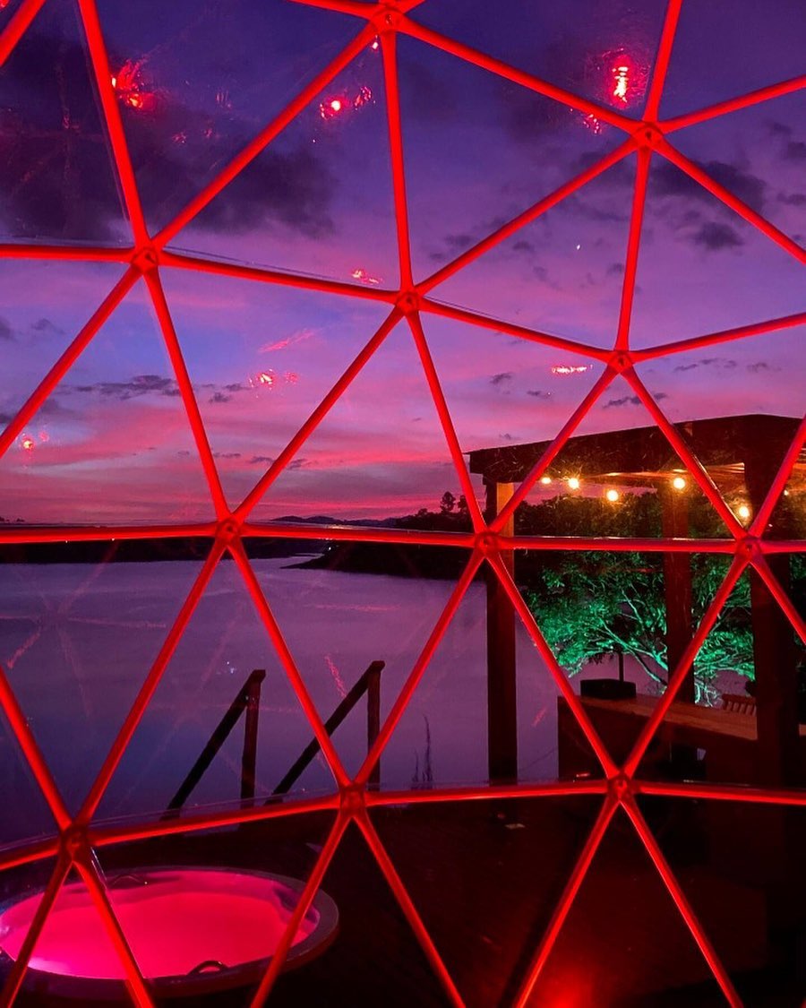 Bubble Experience é uma estrutura em forma de cúpula geodésica, totalmente transparente com vista para a represa, o céu e as estrelas.