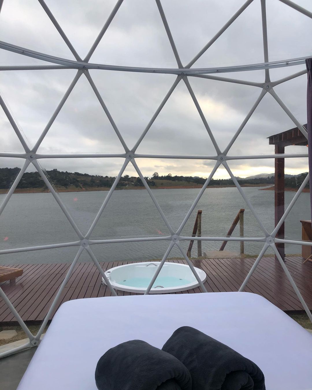 Um domo todo transparente na represa é a mais nova cabana bolha do Brasil