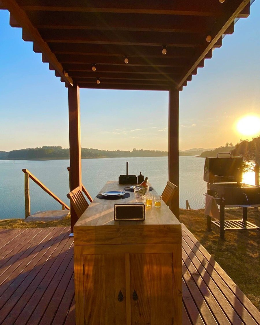Na área externa há ainda duas espreguiçadeiras e duas mesinhas de apoio, um local ótimo para ver o pôr do sol que é incrível na região.