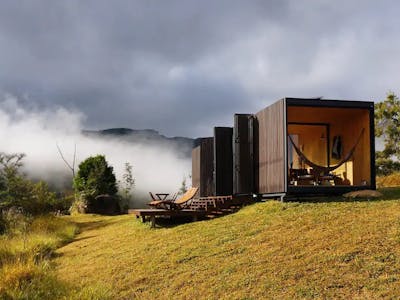 Várias cabanas, locais isolados, muita natureza, casas com vista das montanhas e até tendas no estilo glamping!