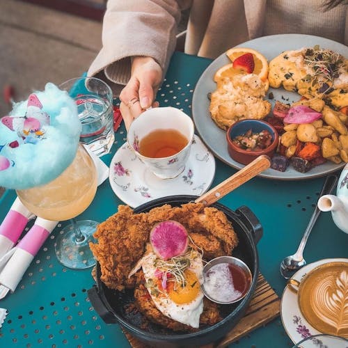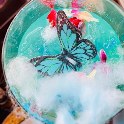 🦋 No Menu: Panquecas de ricota com compota de mirtilo apresentadas artisticamente, um coquetel de espumante chamado Cloud 9 que chega na mesa coberto com algodão doce adornado com borboletas que se dissolvem instantaneamente quando colocado na bebida. Tudo foi feito sob medida para aparecer no Instagram, e os amantes de fotografia podem esperar para capturar um espaço extravagante.