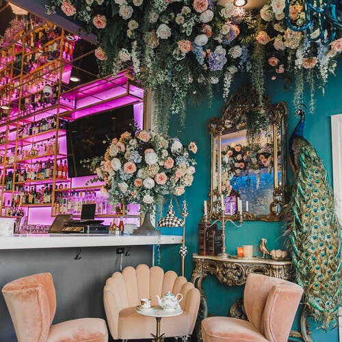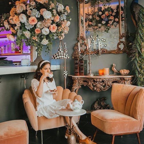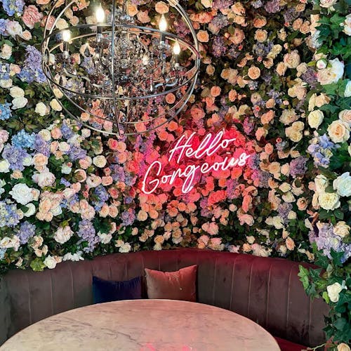🌸 Inaugurado no início de março de 2020 o local é todo decorado com papel de parede azul floral, arranjos de flores exuberantes que parecem brotar do teto e até mesmo uma "barra secreta" como é chamado por lá um espaço que pode ser reservado exclusivamente para o chá da tarde. Outros espaços tem luminosos com frases em neon e cenografia ultra colorida com diversos adornos de natureza.