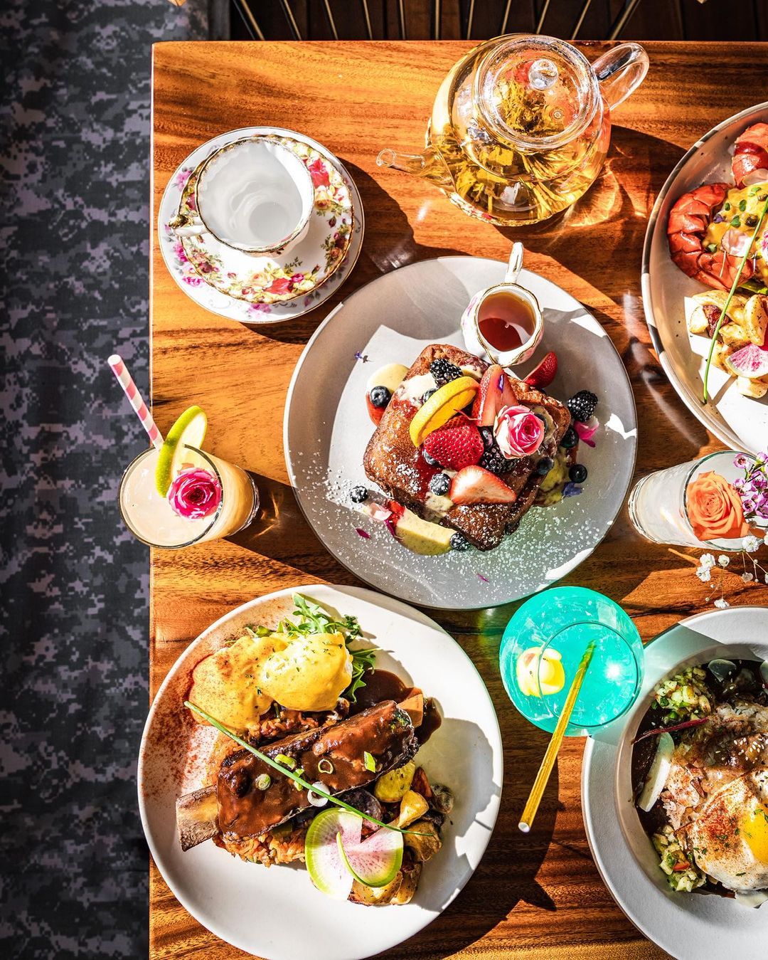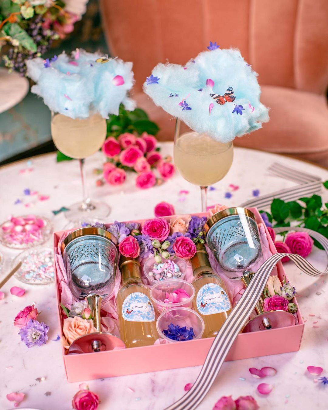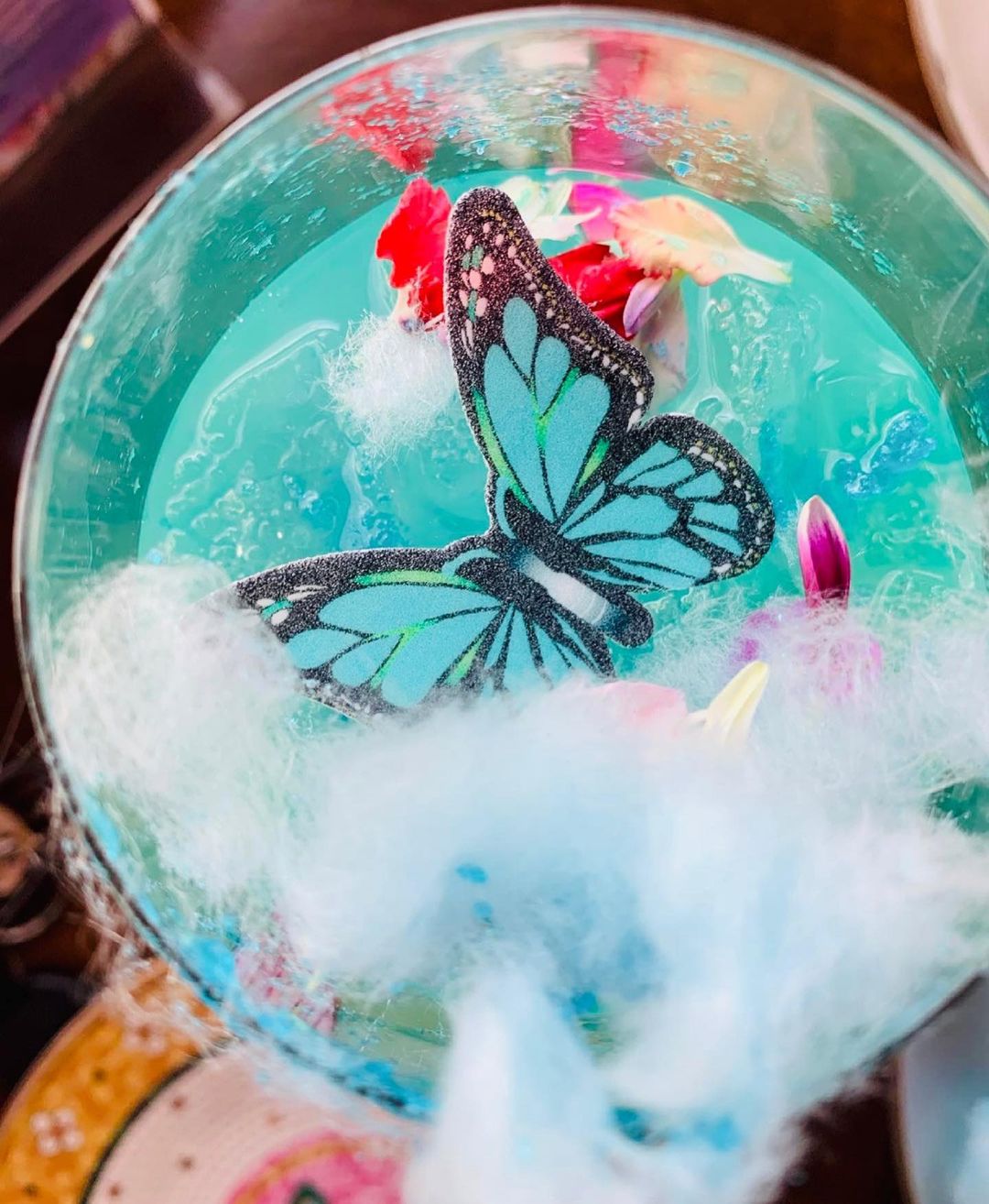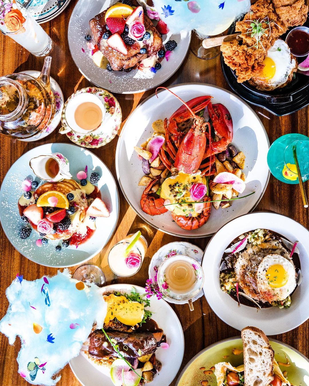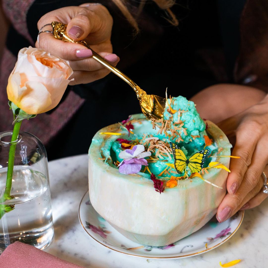 🦋 No Menu: Panquecas de ricota com compota de mirtilo apresentadas artisticamente, um coquetel de espumante chamado Cloud 9 que chega na mesa coberto com algodão doce adornado com borboletas que se dissolvem instantaneamente quando colocado na bebida. Tudo foi feito sob medida para aparecer no Instagram, e os amantes de fotografia podem esperar para capturar um espaço extravagante.