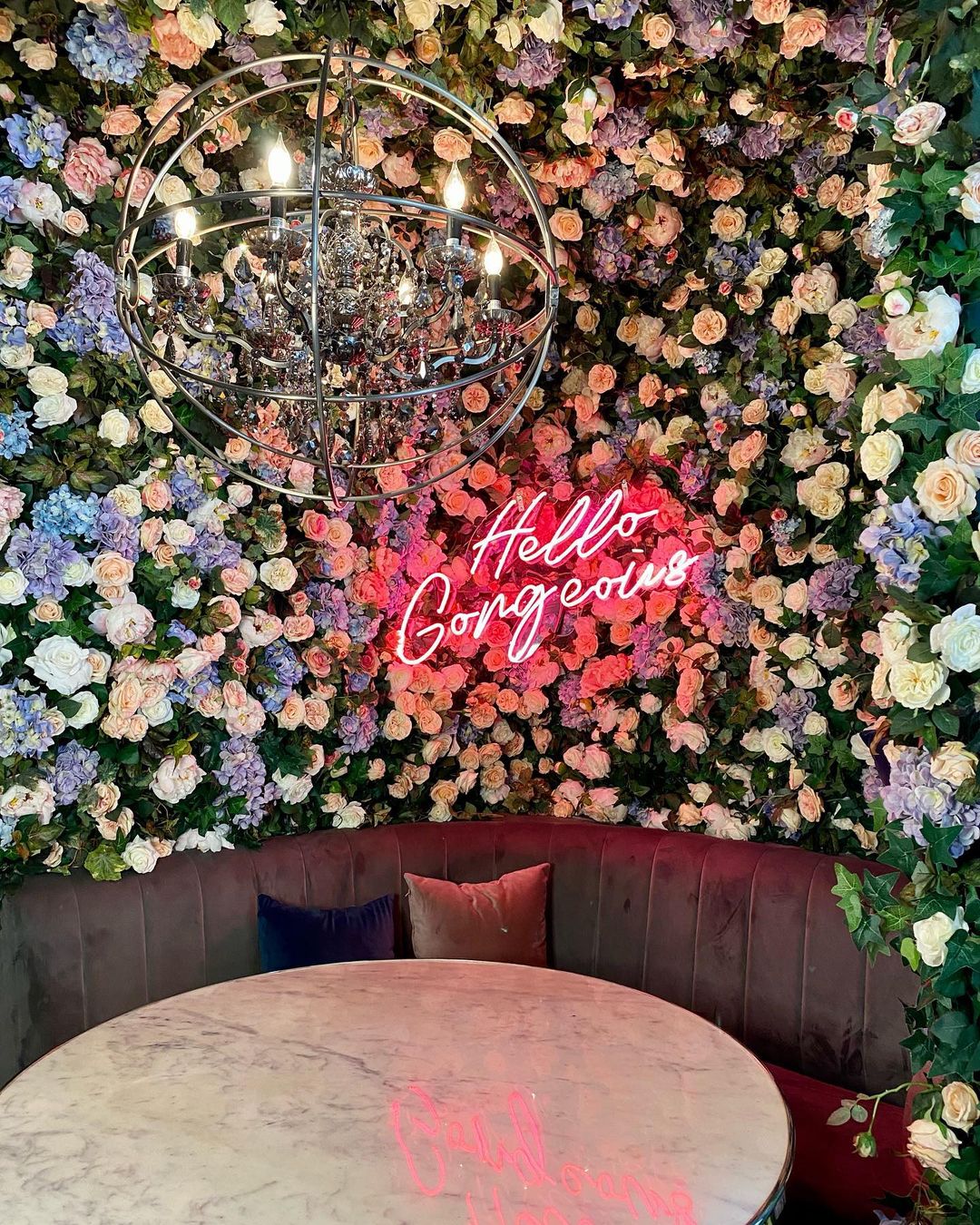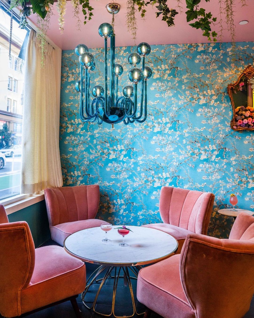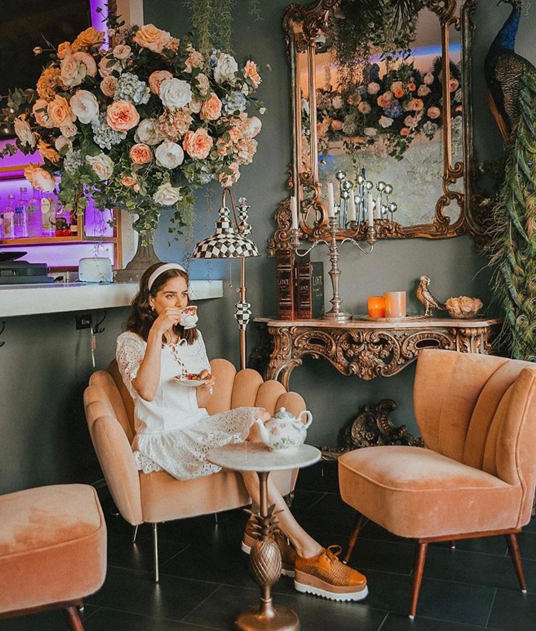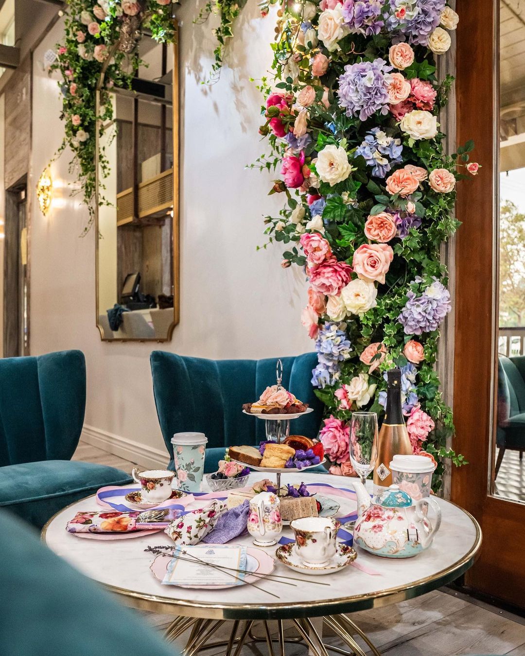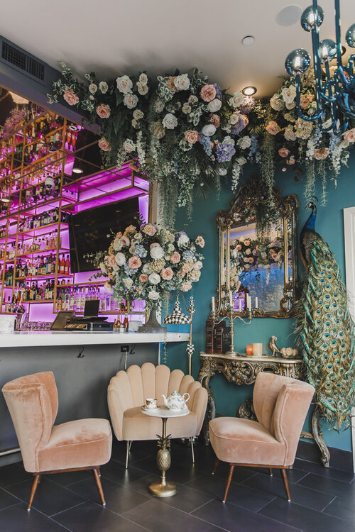 🌸 Inaugurado no início de março de 2020 o local é todo decorado com papel de parede azul floral, arranjos de flores exuberantes que parecem brotar do teto e até mesmo uma "barra secreta" como é chamado por lá um espaço que pode ser reservado exclusivamente para o chá da tarde. Outros espaços tem luminosos com frases em neon e cenografia ultra colorida com diversos adornos de natureza.