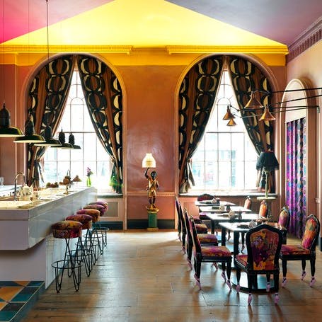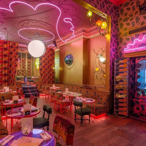 Pensado para ser uma experiência inesquecível para os clientes, o local é um complexo de bares e restaurantes localizado no edifício que também já foi sede do atelier do estilista Christian Dior, em Londres. Todos os ambientes tem interferência da arte e artistas de diversos lugares foram convidados para fazer parte do projeto de decoração, pintura, estilismo dos móveis e muito mais. Sem falar na parte gastronômica onde os chefs são renomados e experts no assunto.