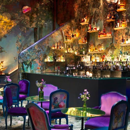 Cada ambiente propõe uma emoção diferente, com sensações únicas. Mourad Mazouz que é um dos empresários sócios do local, pensou nos espaços junto com outros designers e artistas convidados. Muitos deles criaram objetos e obras de arte específicas para o projeto, como as cadeiras de bailarina do designer Andres Ros Soto no Parlour até as fotografias de Carolyn Quartermaine nas costas das cadeiras do espaço Glade.