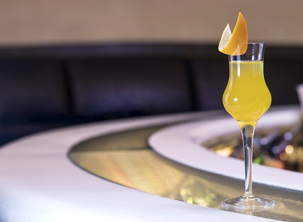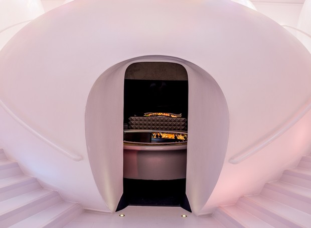 Um bar e lounge ultramoderno criado por Mourad Mazouz e o aclamado designer Noé Duchaufour-Lawrance, o ambiente é um espaço intimista e elegante para os clientes desfrutarem de um coquetel antes do jantar. Impossível não querer tirar uma foto nesse ambiente que tem também as conhecidas cabines de banheiro (logo acima do bar) que foram criadas por Duchaufour-Lawrance como uma experiência retro-futurista pra quem estiver por ali.