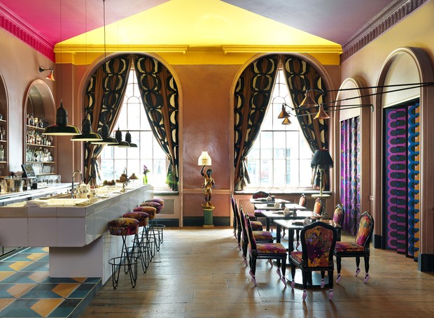 Pensado para ser uma experiência inesquecível para os clientes, o local é um complexo de bares e restaurantes localizado no edifício que também já foi sede do atelier do estilista Christian Dior, em Londres. Todos os ambientes tem interferência da arte e artistas de diversos lugares foram convidados para fazer parte do projeto de decoração, pintura, estilismo dos móveis e muito mais. Sem falar na parte gastronômica onde os chefs são renomados e experts no assunto.