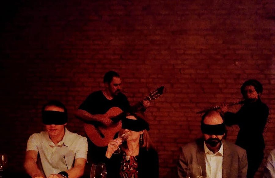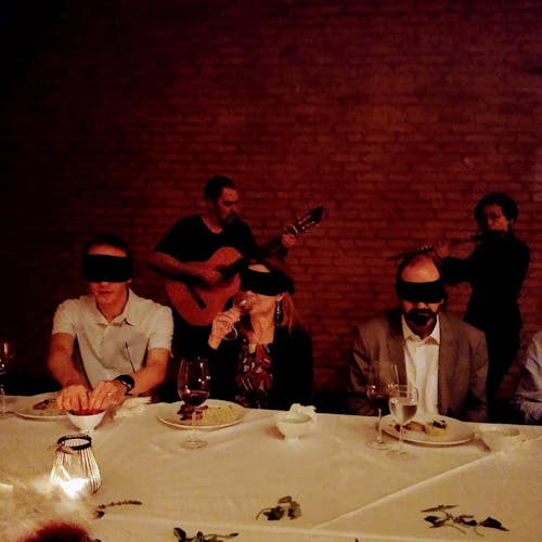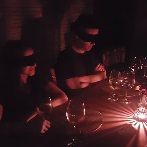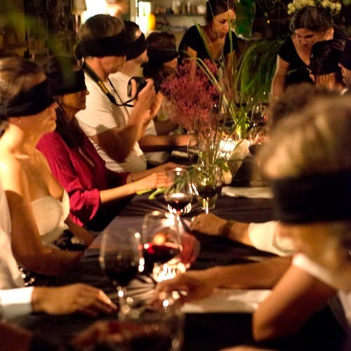 Já imaginou chegar em um ambiente para jantar sem enxergar absolutamente nada e descobrir o menu através da experiência sensorial do olfato, do toque e por último o paladar enquanto ouve uma boa música sem saber de onde vem ou quem está tocando? Diferentes estímulos como aromas, texturas, sabores, sons, o corpo e o escuro em si - são realçados e uma vivência profunda e marcante pode acontecer. A ideia é desenvolver eventos que tenham o potencial de tocar, transformar, encantar.