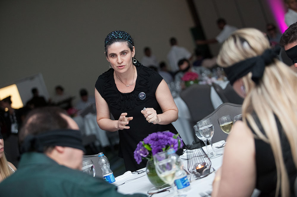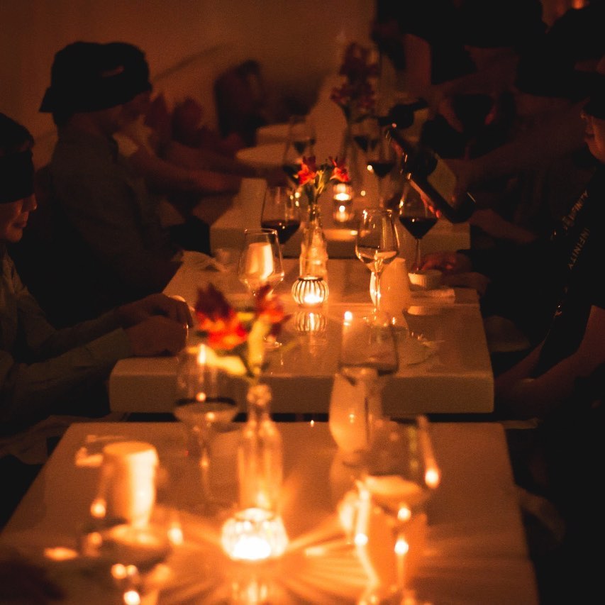 Já imaginou chegar em um ambiente para jantar sem enxergar absolutamente nada e descobrir o menu através da experiência sensorial do olfato, do toque e por último o paladar enquanto ouve uma boa música sem saber de onde vem ou quem está tocando? Diferentes estímulos como aromas, texturas, sabores, sons, o corpo e o escuro em si - são realçados e uma vivência profunda e marcante pode acontecer. A ideia é desenvolver eventos que tenham o potencial de tocar, transformar, encantar.