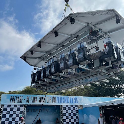 Os ingressos são vendidos pelo site da Dinner in The Sky, link abaixo dos vídeos.