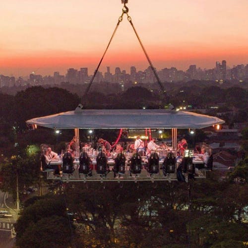 Saia da rotina em uma experiência gastronômica a 50 metros de altura sobre São Paulo! Saiba tudo sobre o Dinner in the Sky