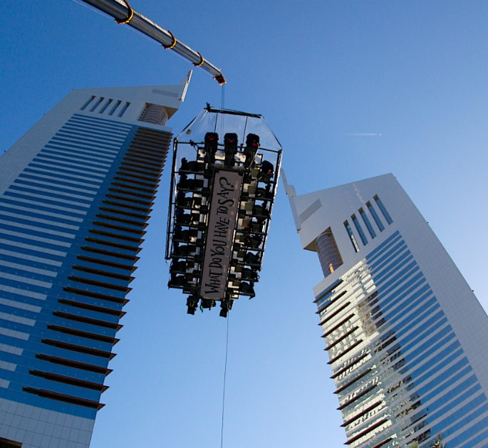 Hoje são mais de 75 países que o Dinner in the Sky acontece e nunca houve qualquer possibilidade de incidentes.