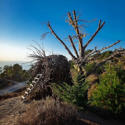 Sem comunicação via internet nem sinal de telefone. Zero wi-fi. Sem iluminação. Um ninho de pássaro em tamanho gigante para humanos. Uma vista espetacular para o mar de Big Sur na Califórnia.