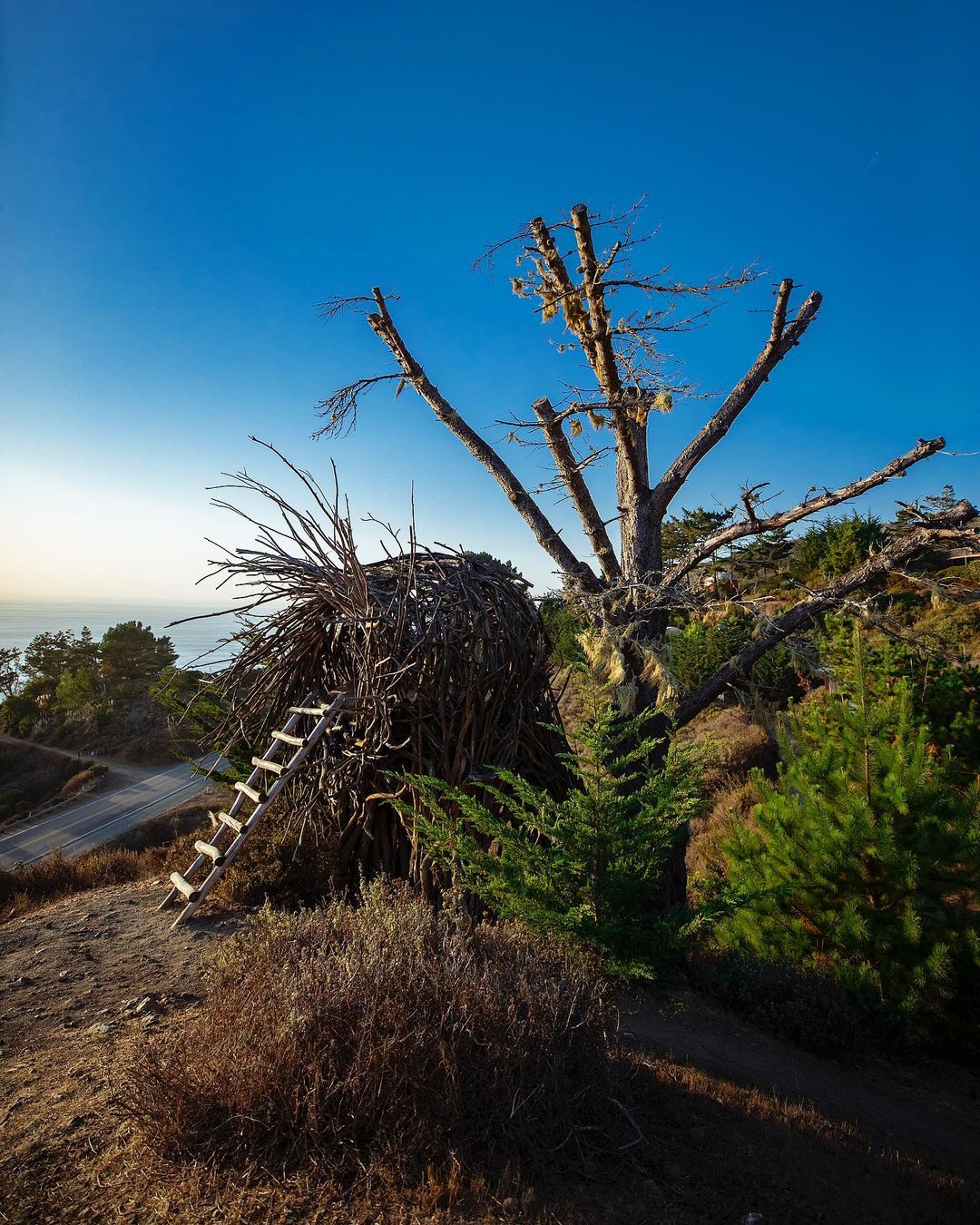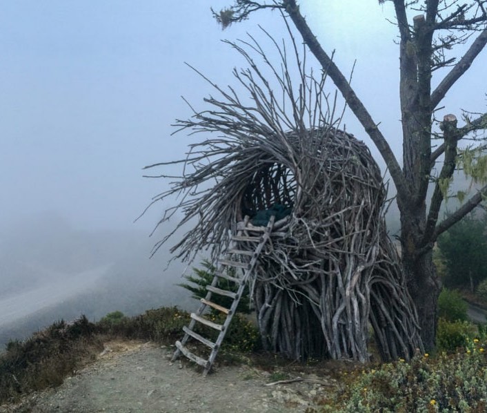 Sem comunicação via internet nem sinal de telefone. Zero wi-fi. Sem iluminação. Um ninho de pássaro em tamanho gigante para humanos. Uma vista espetacular para o mar de Big Sur na Califórnia.