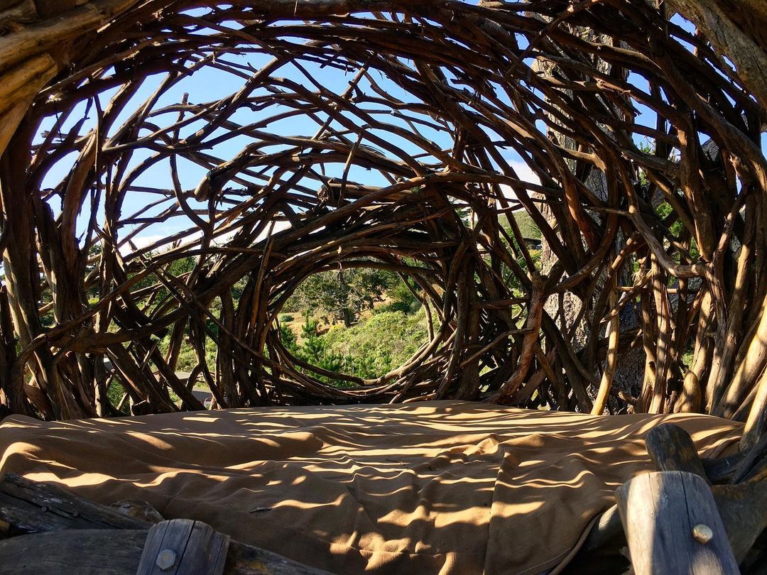 Chamado de HUMAN NEST, o ninho exclusivo oferece uma das melhores vistas do Treebones Resort, hotel que oferece a hospedagem. A ideia aqui é adormecer totalmente embalado em um ninho de tamanho humano, apenas com um fino colchão forrando o chão, sem portas ou cortinas e com seu entorno exatamente como em um ninho real: há espaços entreabertos na madeira, ou seja, choveu molhou! Esta arte em madeira incomum foi criada e construída pelo artista de Big Sur, Jayson Fann.