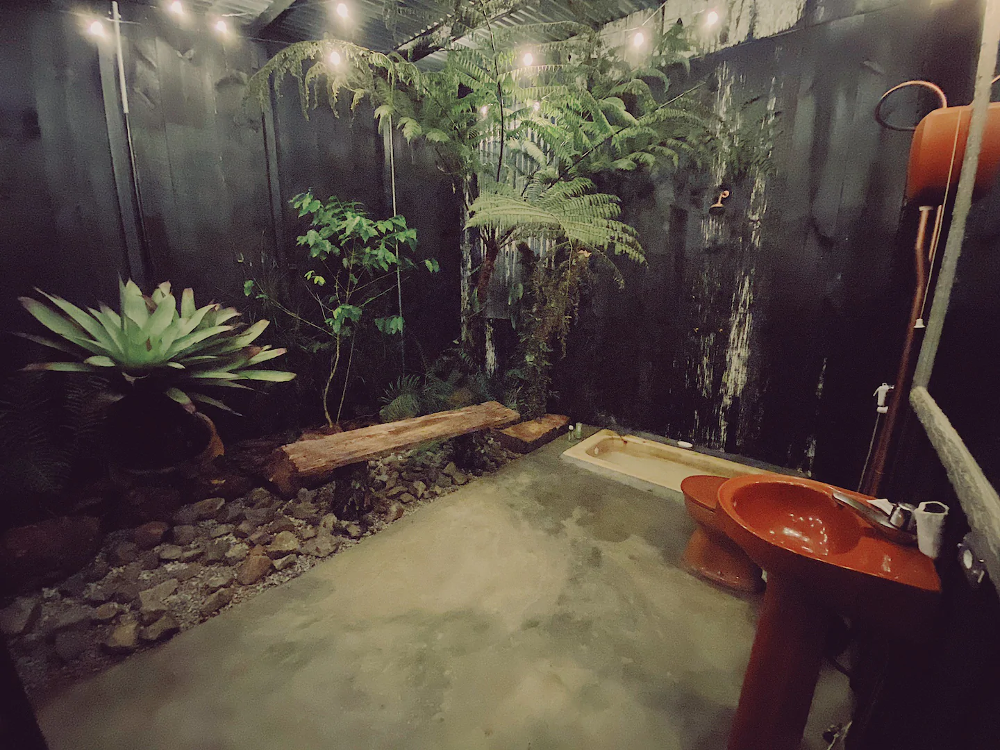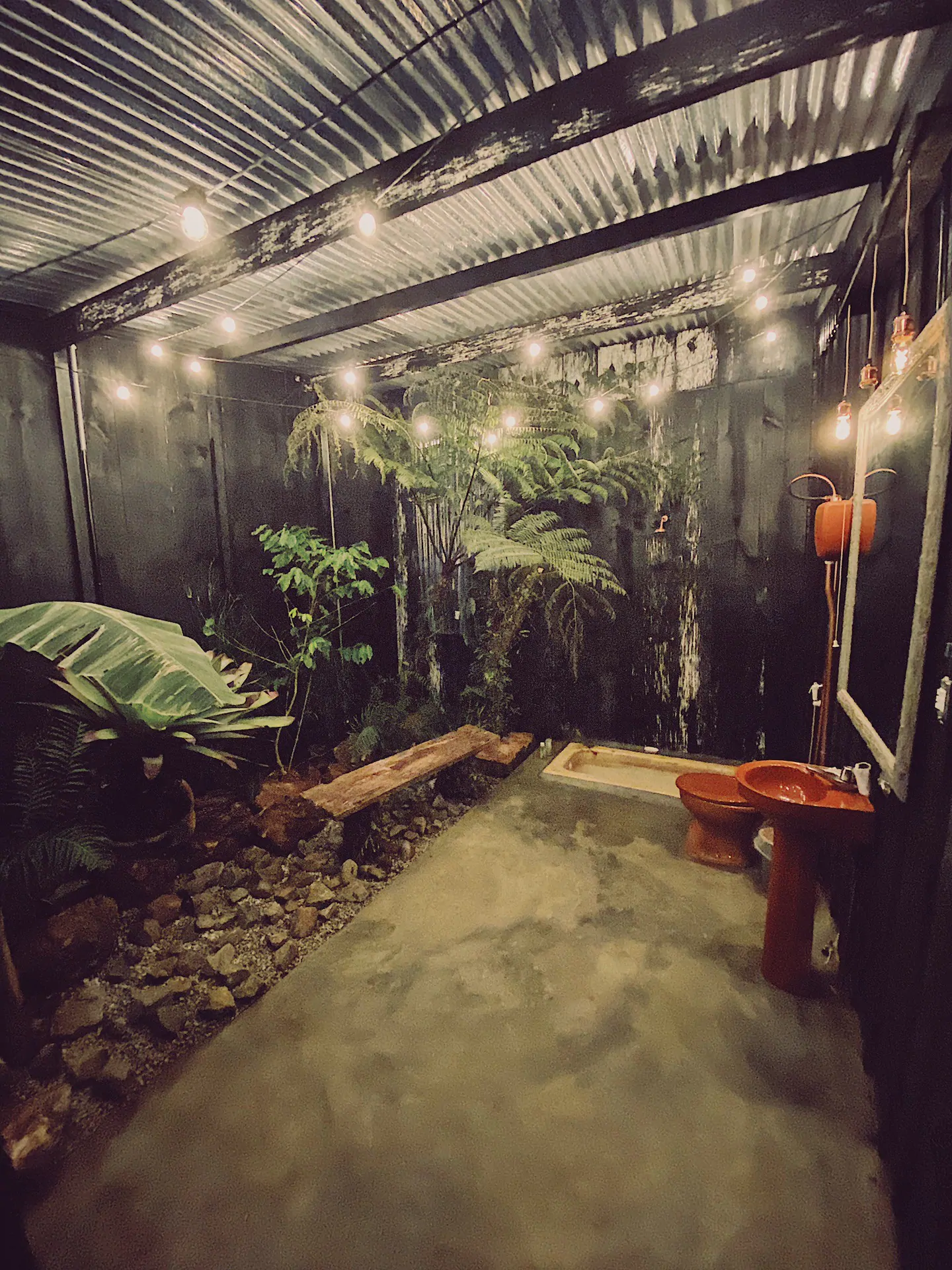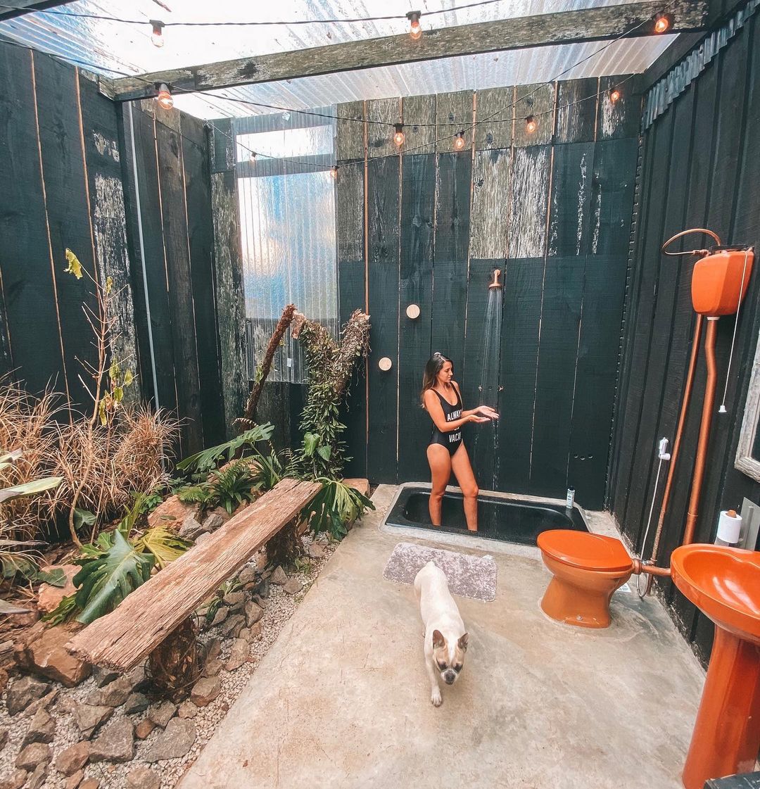 Ao lado de fora da casa há uma área com parilla, e o banheiro além de muito estiloso completa os ambientes exóticos da casa, é bem aberto e com iluminação natural.