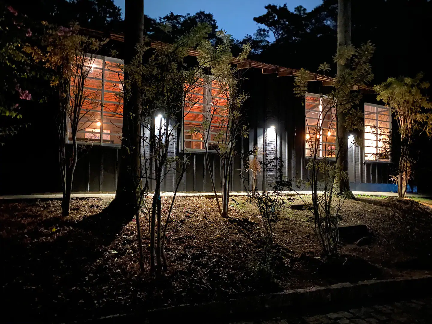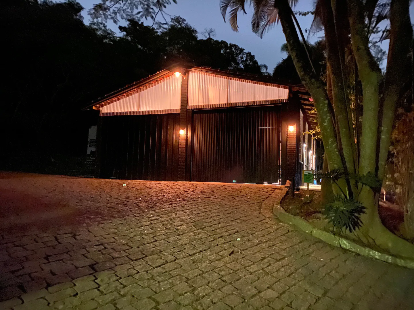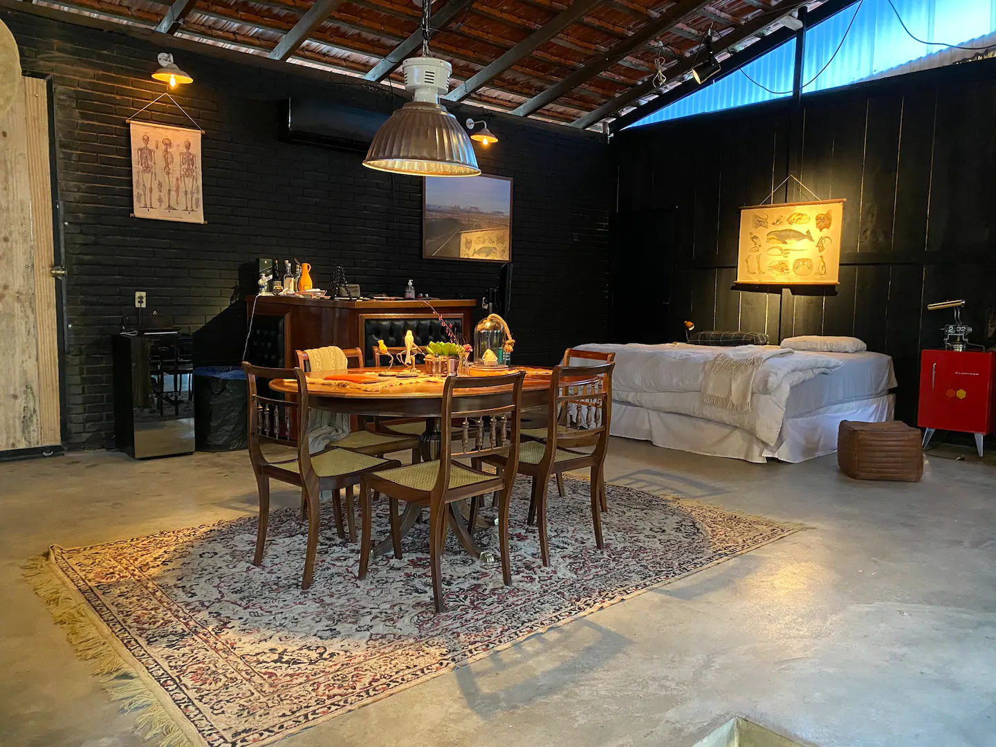 A casa galpão fica disponível para locação pelo Airbnb e o link está logo abaixo das fotos.