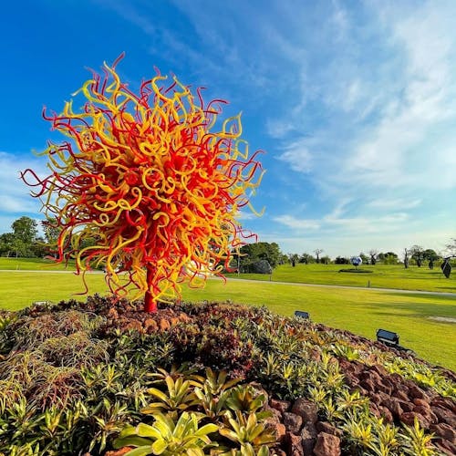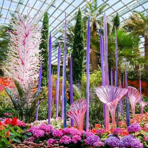 Art Sculptures: É o lar de mais de 40 esculturas de todo o mundo. Apresentando peças únicas, artesanato intrigante e trabalhos em pedra, essas esculturas complementam a beleza das exibições de plantas e adicionam uma nova dimensão à paisagem.