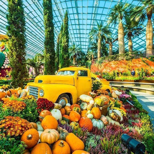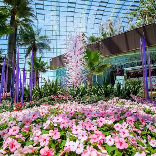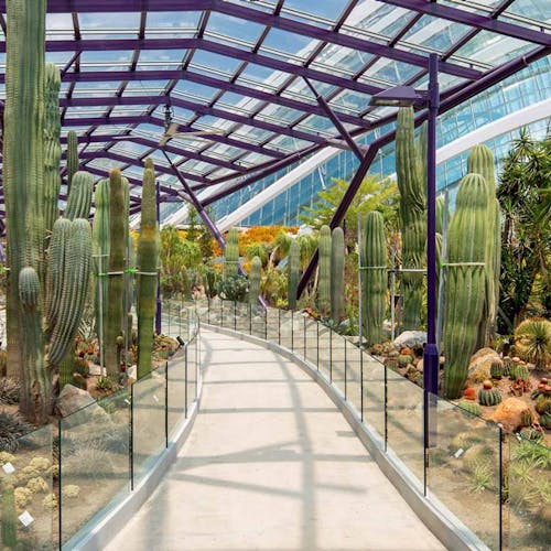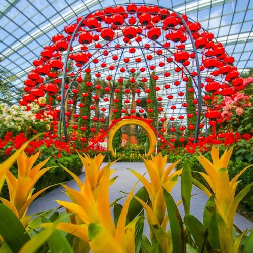 Flower Dome: Espetacular e inovadora, é a maior estufa de vidro do mundo listada no Guinness World Records 2015! Surpreenda-se com a mudança na exibição de flores e plantas das regiões mediterrâneas e semi-áridas, com espécies exclusivas e exóticas!