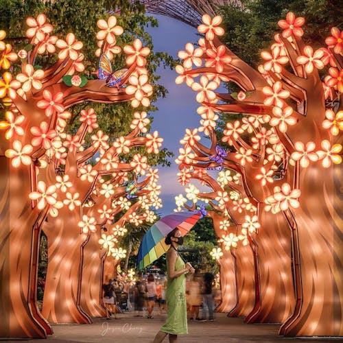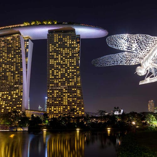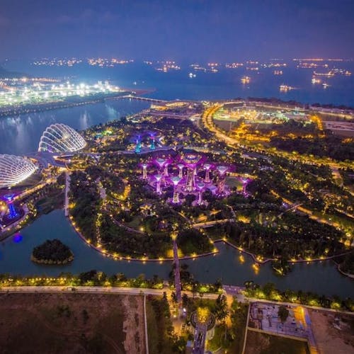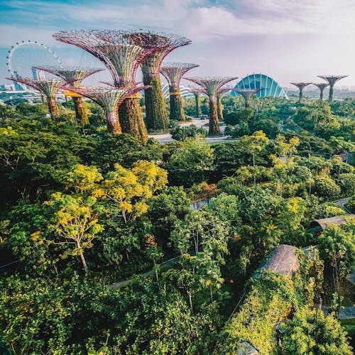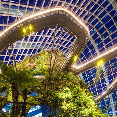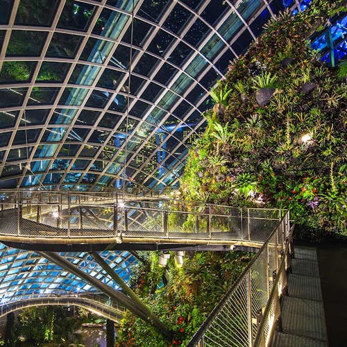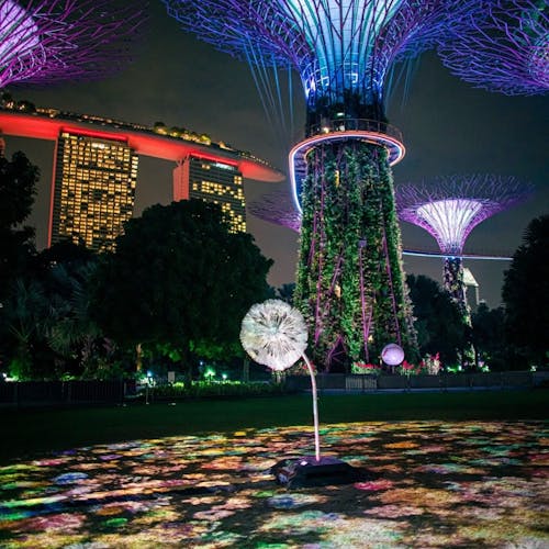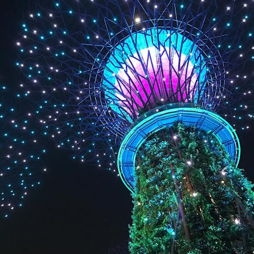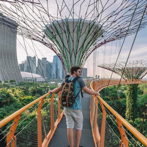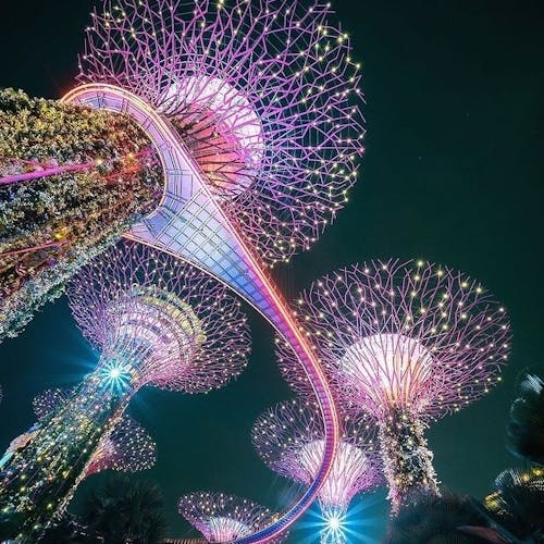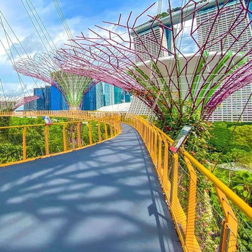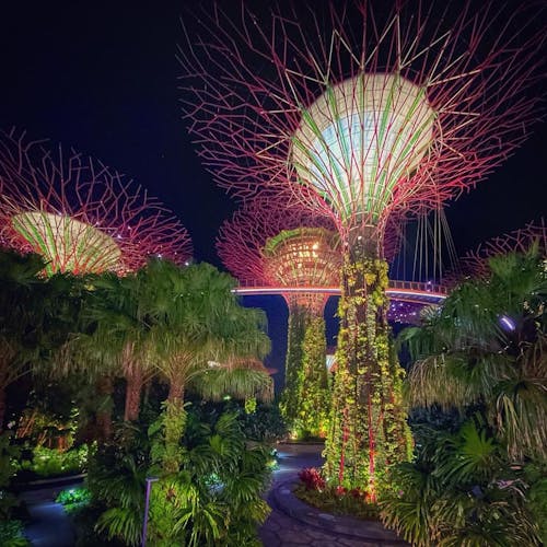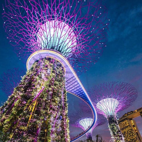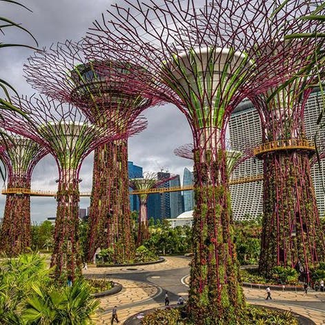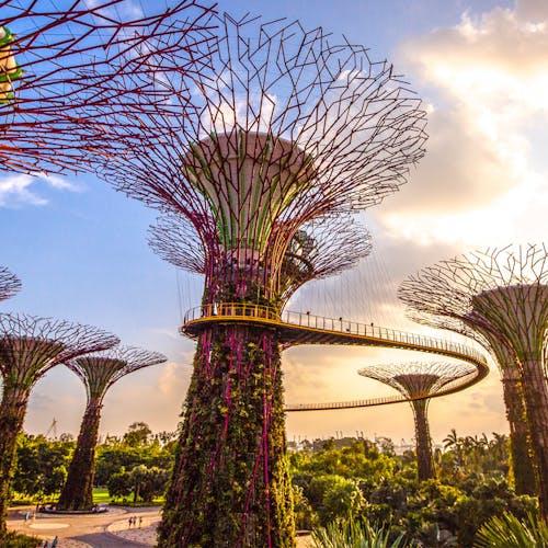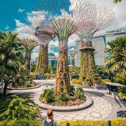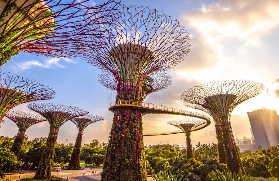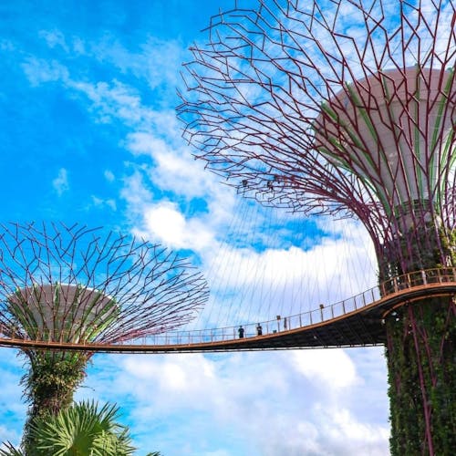 Supertree: Medindo entre 25 e 50 metros de altura, os Gardens by the Bay's Supertrees são projetados com grandes copas que fornecem sombra durante o dia e ganham vida com uma exibição estimulante de luzes e sons à noite. Passeie ao longo da OCBC Skyway, plataforma de 22 metros de altura, acompanhando as vistas panorâmicas dos jardins e do horizonte de Marina Bay.