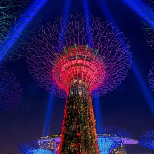 Um show de luzes, músicas e uma infraestrutura surreal. A atmosfera futurista de Singapura e seus jardins mais excêntricos: Gardens by the Bay.