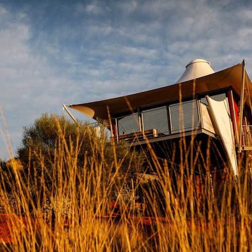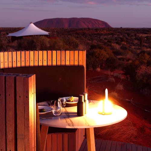 Uma estadia no Longitude 131 é experimentar o luxo em uma viagem. Cada tenda está localizada em um ponto do deserto com cenário natural extraordinário, uma experiência pessoal de cultura e história locais, arte e gastronomia local com vinhos provenientes de produtores regionais.