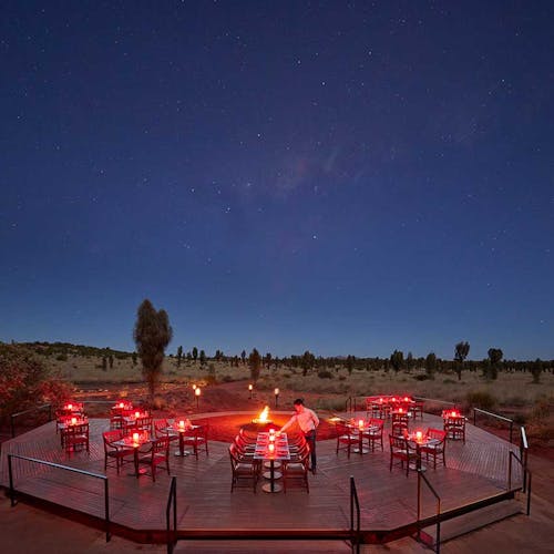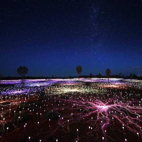 - Field of Light: A instalação Field of Light do artista Bruce Munro tem 50.000 caules em forma de botão que florescem e parecem balançar enquanto a escuridão desce sobre o deserto da Austrália, causando um efeito luminoso surreal. Também incluso na hospedagem.